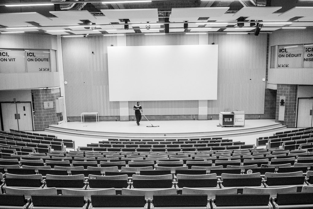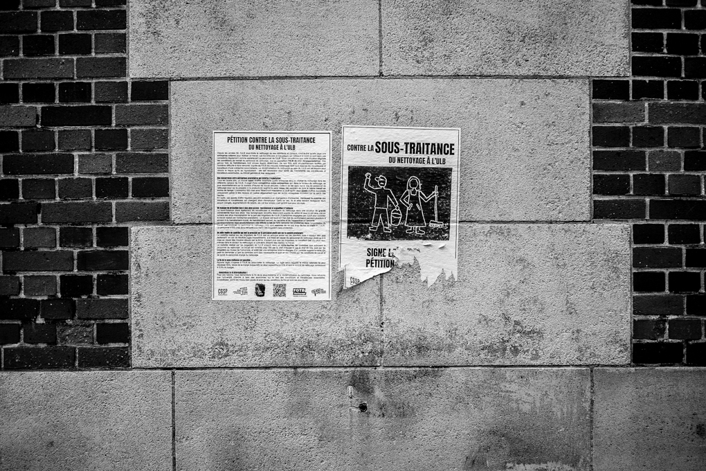 Depuis les années 80, l’ULB sous-traite le nettoyage de ses bâtiments et campus, c’est-à-dire qu’elle paye une entreprise externe pour réaliser ce travail. Les travailleuses et travailleurs qui nettoient à l’ULB ne sont donc pas considérés légalement comme appartenant au personnel de l’ULB. Nous considérons que cette situation dégrade les conditions de travail du personnel de nettoyage, tout en permettant l’ULB de s’en déresponsabiliser. Des graves faits de harcèlement l’ont encore illustré récemment. De tels faits sont structurellement facilités par l’extrême difficulté à faire remonter auprès de l’ULB les mauvais traitements dont sont victimes les travailleuses et travailleurs d’une entreprise sous-traitante. La réinternalisation du nettoyage au sein de l’ULB est nécessaire pour réduire le risque qu’ils se reproduisent : elle est nécessaire pour sortir de l’invisibilité ces travailleuses et travailleurs essentielles, au travail pénible et mal rémunéré.